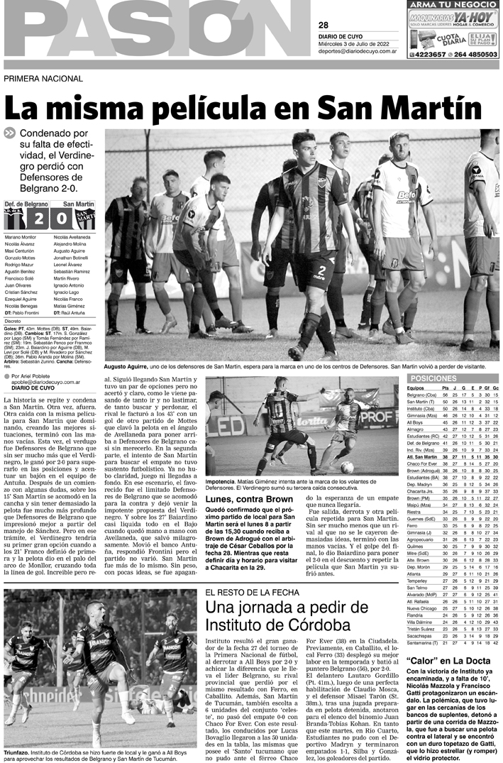 Diario de Cuyo | HOME | Noticias Tapa Pasión 3 de Agosto de 2022 Por Redacción Diario de Cuyo 03/08/2022 · 0:00 Escuchar la noticia Escuchar la noticia Your browser doesn’t support HTML5 audio Ver los comentarios ›