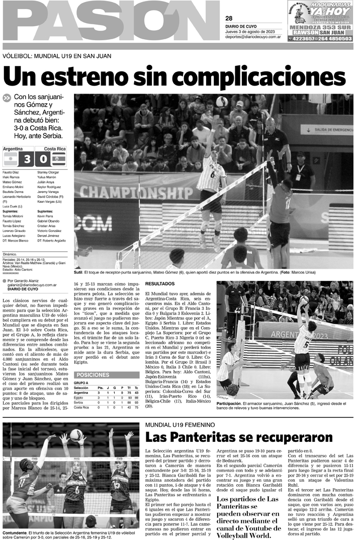 Diario de Cuyo | HOME | Noticias Tapa Pasión 3 de Agosto de 2023 Por Redacción Diario de Cuyo 02/08/2023 · 0:00 Escuchar la noticia Escuchar la noticia Your browser doesn’t support HTML5 audio Ver los comentarios ›