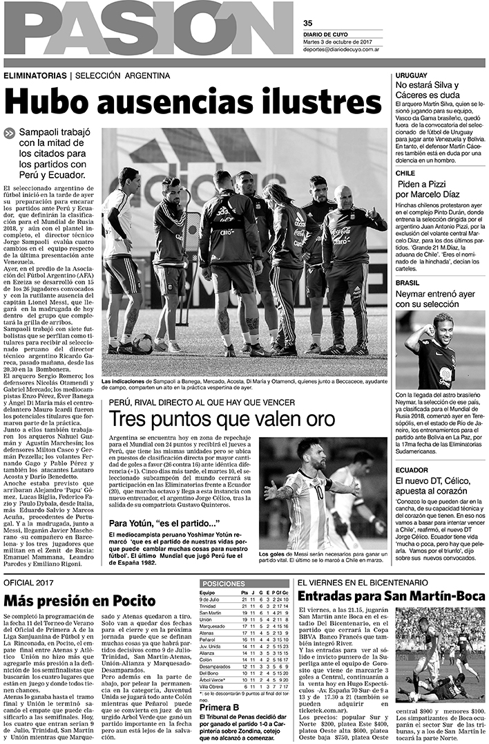 Diario de Cuyo | HOME | Noticias | Tapa Pasión Tapa Pasión 3 de octubre del 2017 Por Redacción Diario de Cuyo 02/10/2017 · 0:00 Escuchar la noticia Escuchar la noticia Your browser doesn’t support HTML5 audio Tapa Pasión Ver los comentarios ›