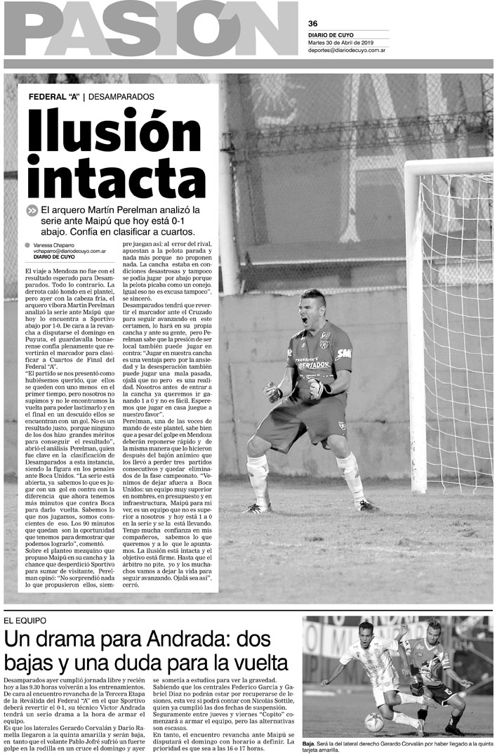 Diario de Cuyo | HOME | Noticias | Tapa Pasión Tapa Pasión 30 de Abril de 2019 Por Redacción Diario de Cuyo 30/04/2019 · 0:00 Escuchar la noticia Escuchar la noticia Your browser doesn’t support HTML5 audio Tapa Pasión Ver los comentarios ›