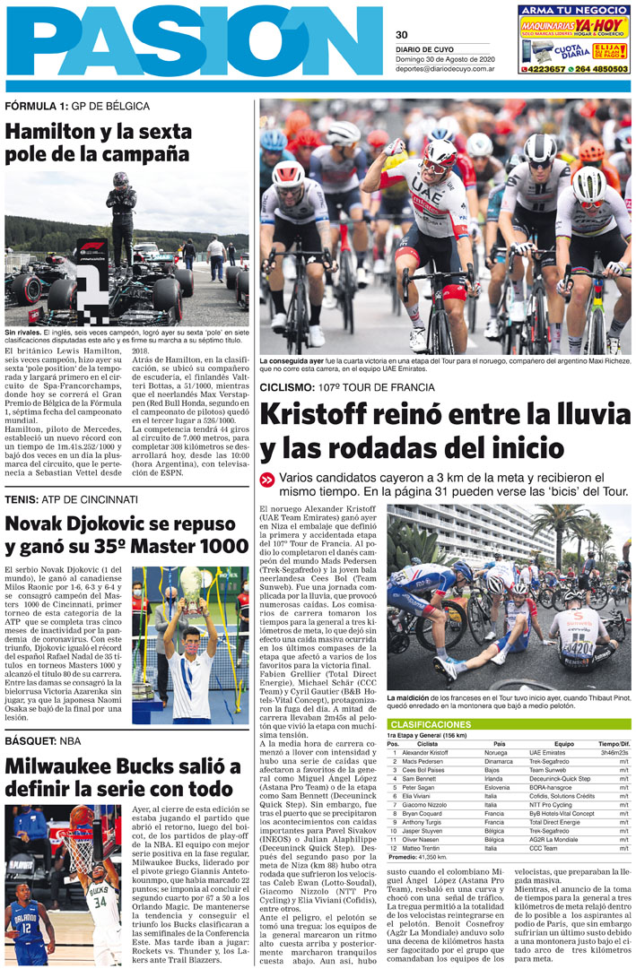 Diario de Cuyo | HOME | Noticias Tapa Pasión 30 de Agosto del 2020 Por Redacción Diario de Cuyo 29/08/2020 · 0:00 Escuchar la noticia Escuchar la noticia Your browser doesn’t support HTML5 audio Ver los comentarios ›