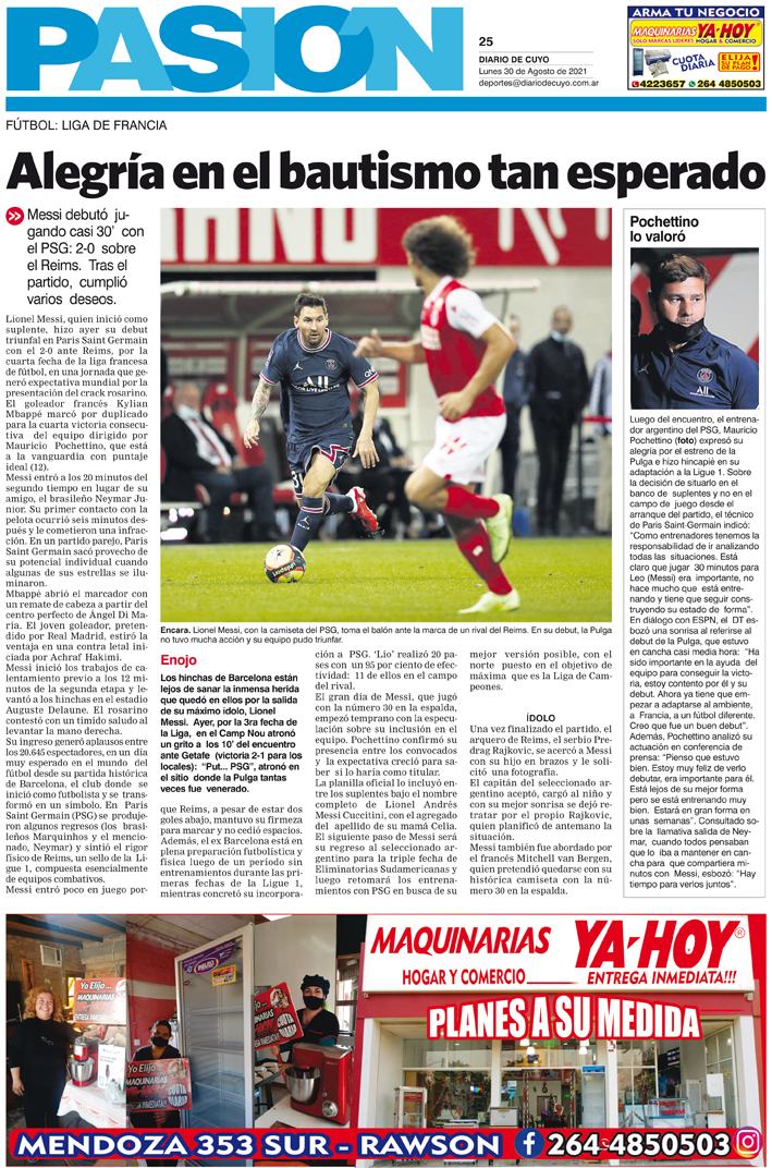 Diario de Cuyo | HOME | Noticias Tapa Pasión 30 de Agosto del 2021 Por Redacción Diario de Cuyo 29/08/2021 · 0:00 Escuchar la noticia Escuchar la noticia Your browser doesn’t support HTML5 audio Ver los comentarios ›