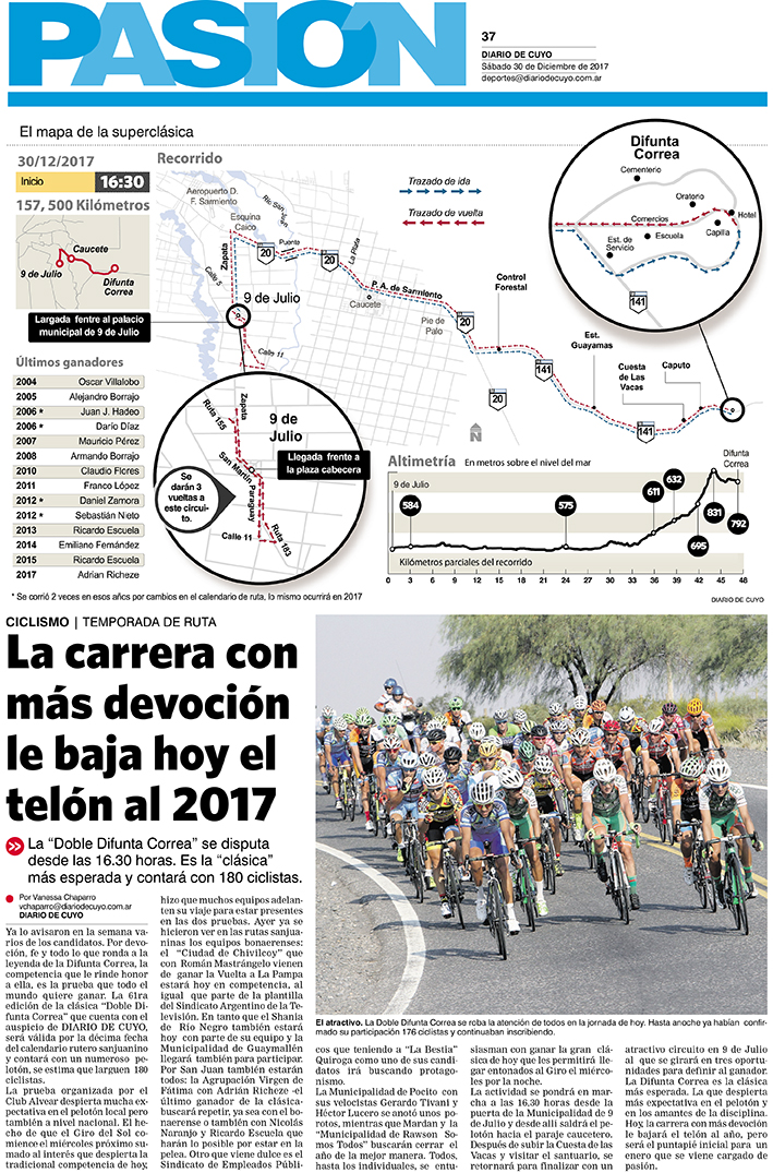 Diario de Cuyo | HOME | Noticias | Tapa Pasión Tapa Pasión 30 de Diciembre del 2017 Por Redacción Diario de Cuyo 29/12/2017 · 0:00 Escuchar la noticia Escuchar la noticia Your browser doesn’t support HTML5 audio Tapa Pasión Ver los comentarios ›