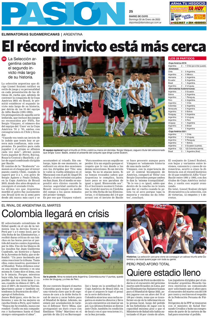 Diario de Cuyo | HOME | Noticias Tapa Pasión 30 de Enero del 2022 Por Redacción Diario de Cuyo 29/01/2022 · 0:00 Escuchar la noticia Escuchar la noticia Your browser doesn’t support HTML5 audio Ver los comentarios ›