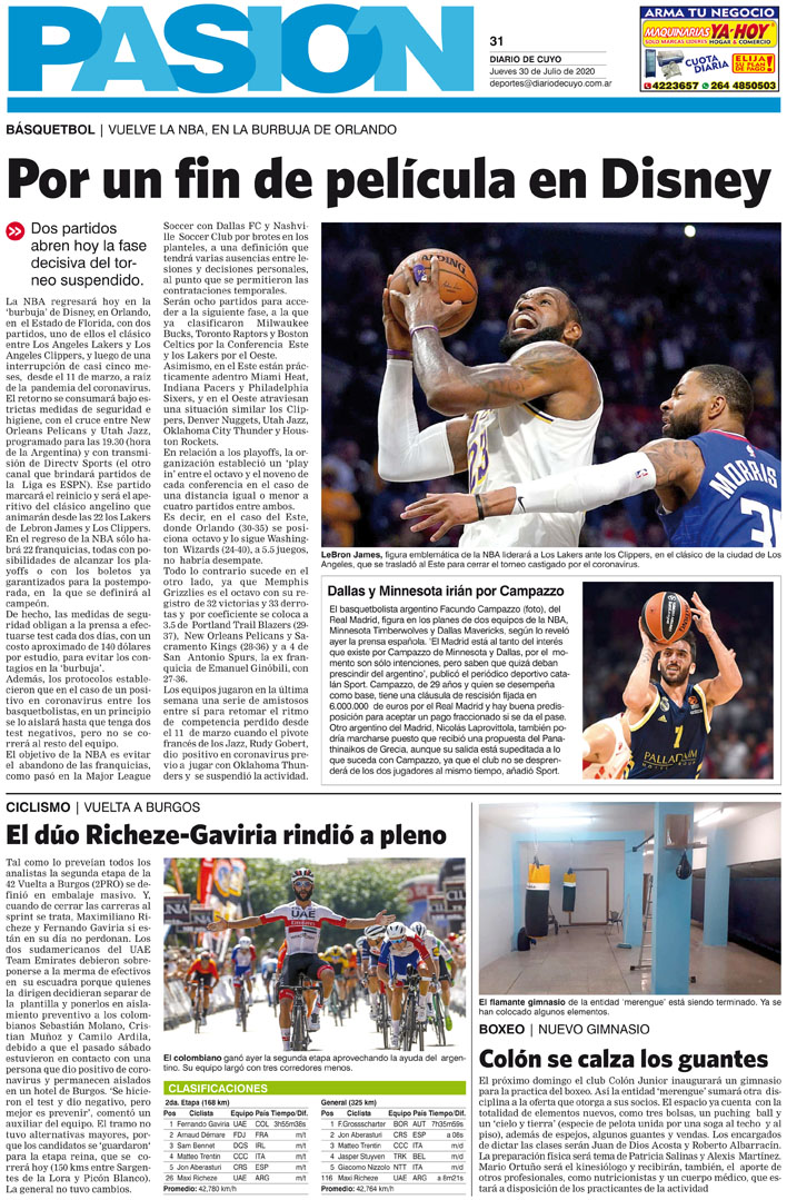 Diario de Cuyo | HOME | Noticias Tapa Pasión 30 de Julio del 2020 Por Redacción Diario de Cuyo 29/07/2020 · 0:00 Escuchar la noticia Escuchar la noticia Your browser doesn’t support HTML5 audio Ver los comentarios ›