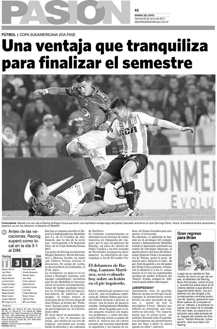 Diario de Cuyo | HOME | Noticias Tapa Pasión 30 de Junio de 2017 Por Redacción Diario de Cuyo 30/06/2017 · 0:00 Escuchar la noticia Escuchar la noticia Your browser doesn’t support HTML5 audio Ver los comentarios ›