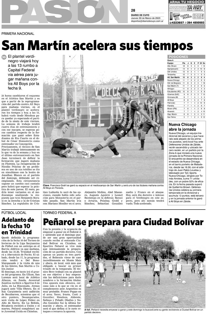 Diario de Cuyo | HOME | Noticias Tapa Pasión 30 de Marzo de 2023 Por Redacción Diario de Cuyo 29/03/2023 · 0:00 Escuchar la noticia Escuchar la noticia Your browser doesn’t support HTML5 audio Ver los comentarios ›