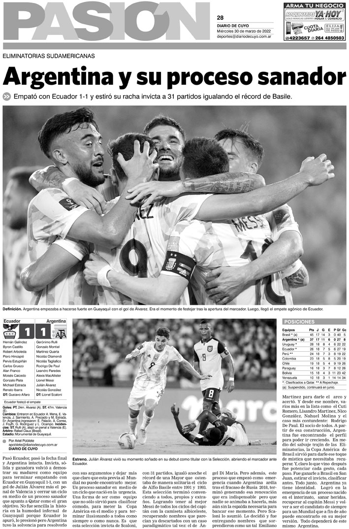 Diario de Cuyo | HOME | Noticias Tapa Pasión 30 de Marzo del 2022 Por Redacción Diario de Cuyo 29/03/2022 · 0:00 Escuchar la noticia Escuchar la noticia Your browser doesn’t support HTML5 audio Ver los comentarios ›
