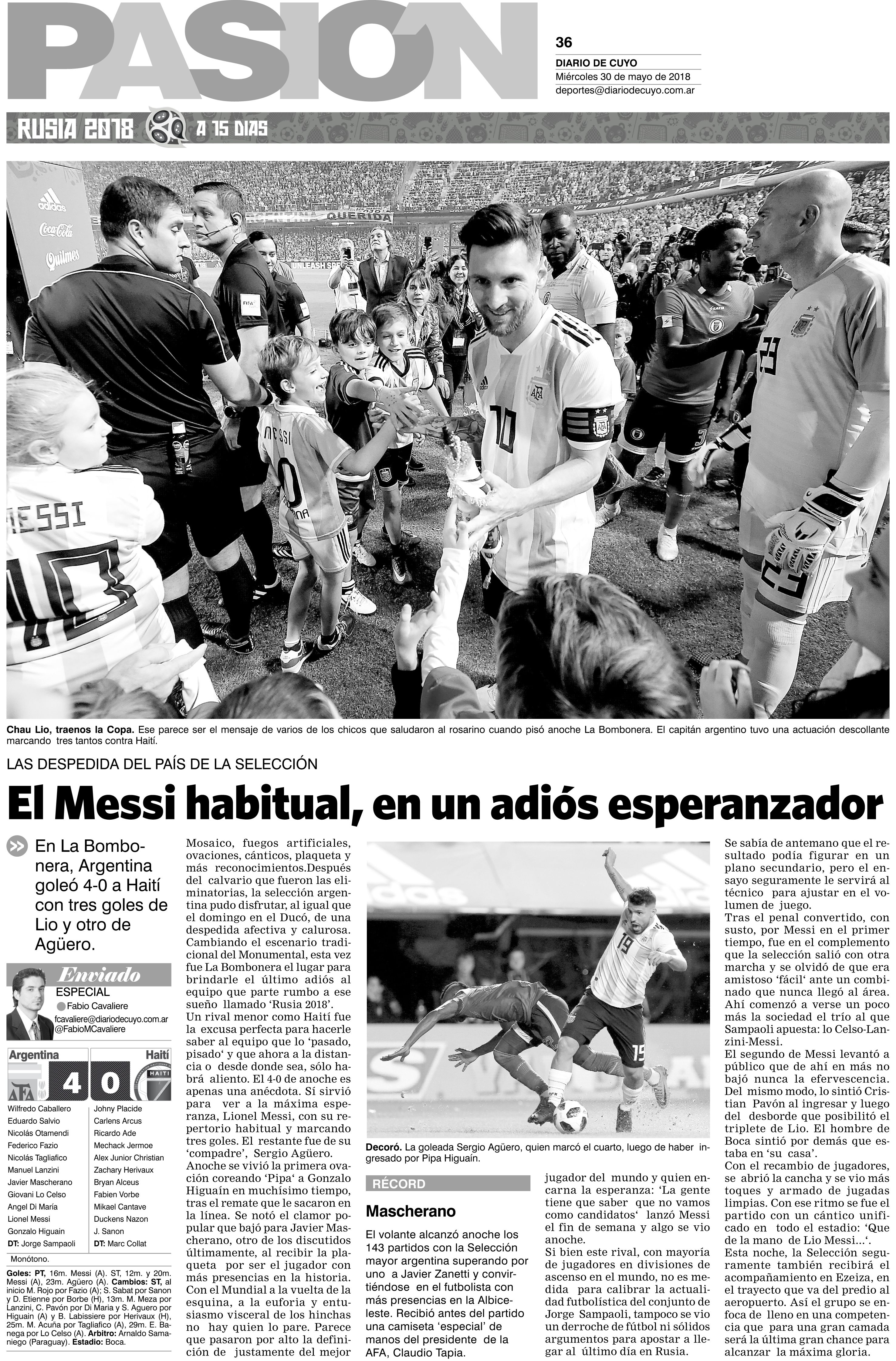 Diario de Cuyo | HOME | Noticias | Tapa Pasión Tapa Pasión 30 de Mayo 2018 Por Redacción Diario de Cuyo 30/05/2018 · 0:00 Escuchar la noticia Escuchar la noticia Your browser doesn’t support HTML5 audio Tapa Pasión Ver los comentarios ›