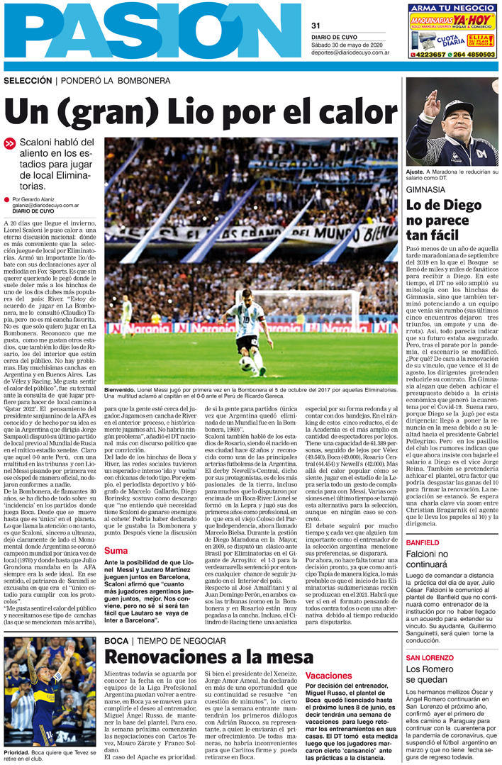 Diario de Cuyo | HOME | Noticias | Tapa Pasión Tapa Pasión 30 de Mayo de 2020 Por Redacción Diario de Cuyo 29/05/2020 · 0:00 Escuchar la noticia Escuchar la noticia Your browser doesn’t support HTML5 audio Tapa Pasión Ver los comentarios ›