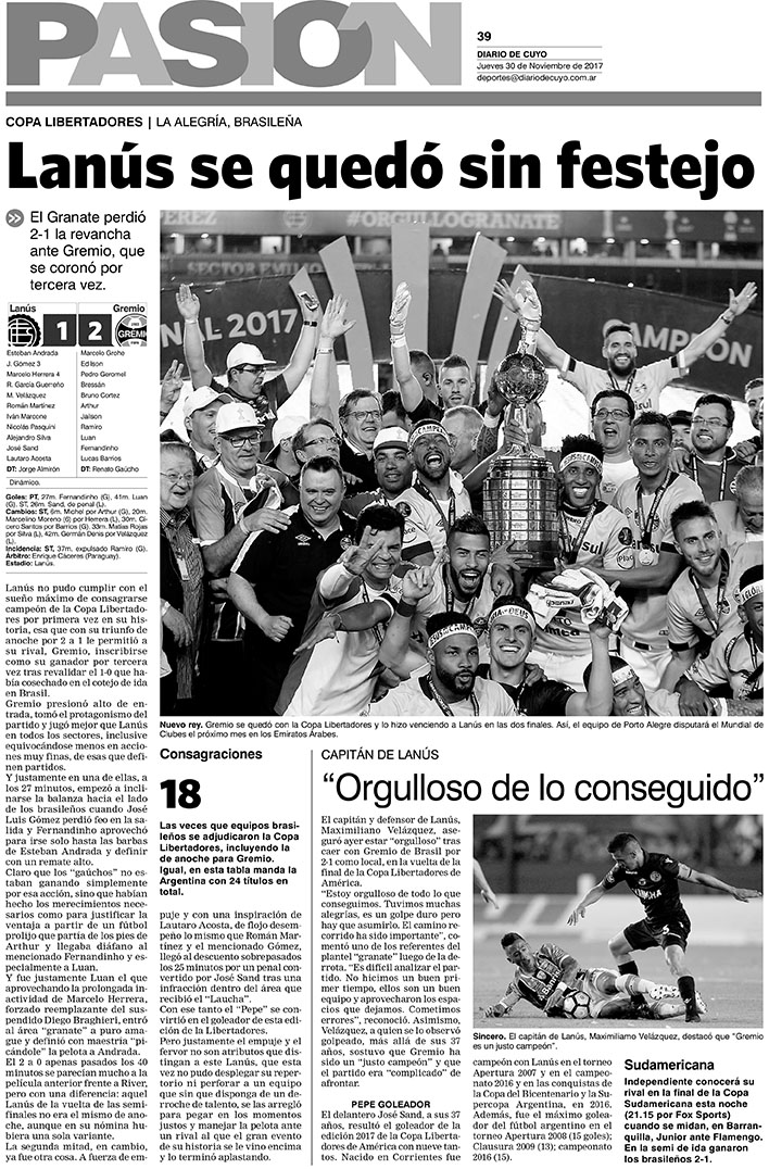 Diario de Cuyo | HOME | Noticias Tapa Pasión 30 de Noviembre del 2017 Por Redacción Diario de Cuyo 30/11/2017 · 0:00 Escuchar la noticia Escuchar la noticia Your browser doesn’t support HTML5 audio Ver los comentarios ›