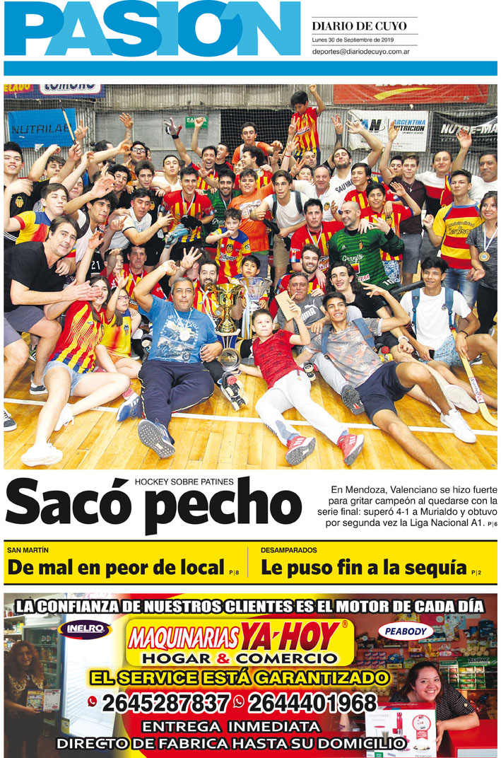 Diario de Cuyo | HOME | Noticias | Tapa Pasión Tapa Pasión 30 de Septiembre 2019 Por Redacción Diario de Cuyo 30/09/2019 · 0:00 Escuchar la noticia Escuchar la noticia Your browser doesn’t support HTML5 audio Tapa Pasión Ver los comentarios ›