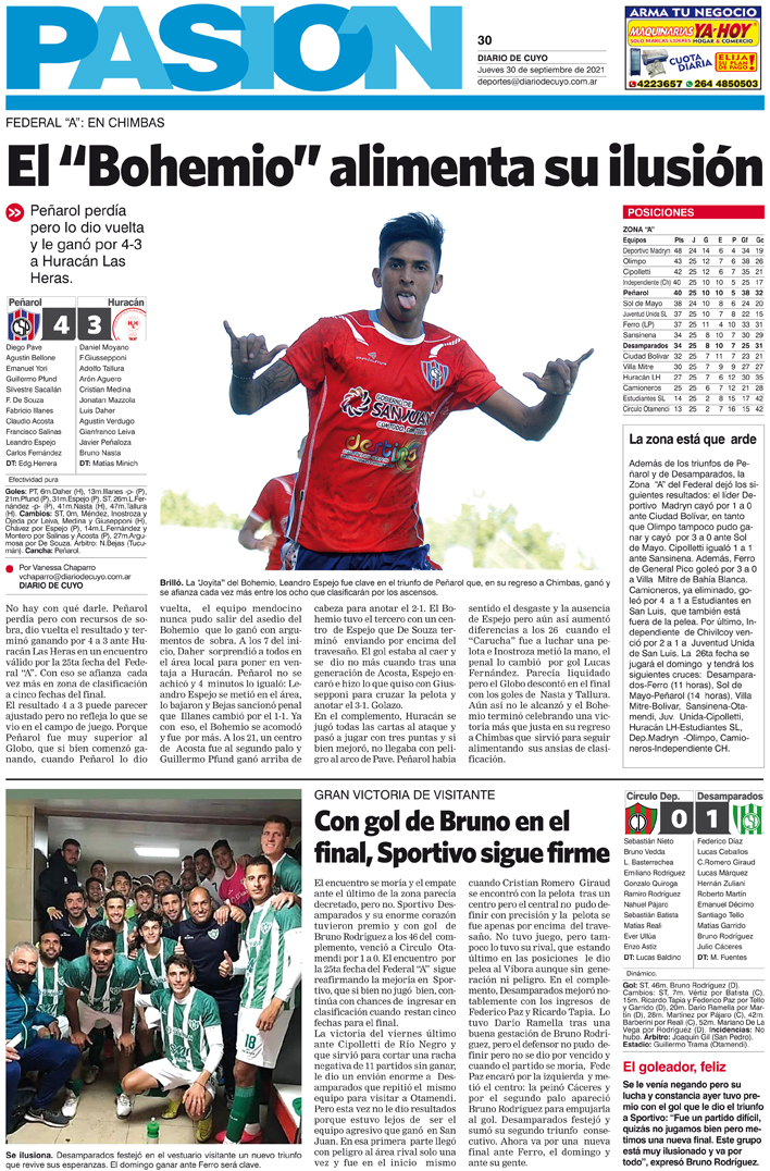 Diario de Cuyo | HOME | Noticias Tapa Pasión 30 de Septiembre del 2021 Por Redacción Diario de Cuyo 29/09/2021 · 0:00 Escuchar la noticia Escuchar la noticia Your browser doesn’t support HTML5 audio Ver los comentarios ›