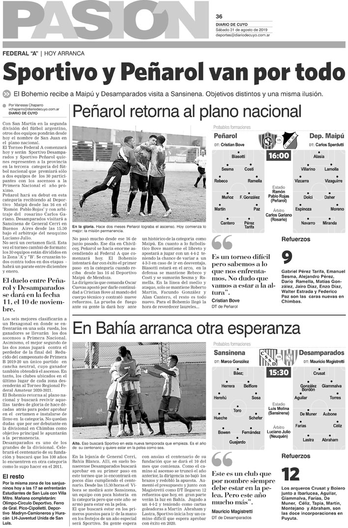 Diario de Cuyo | HOME | Noticias | Tapa Pasión Tapa Pasión 31 de Agosto 2019 Por Redacción Diario de Cuyo 31/08/2019 · 0:00 Escuchar la noticia Escuchar la noticia Your browser doesn’t support HTML5 audio Tapa Pasión Ver los comentarios ›