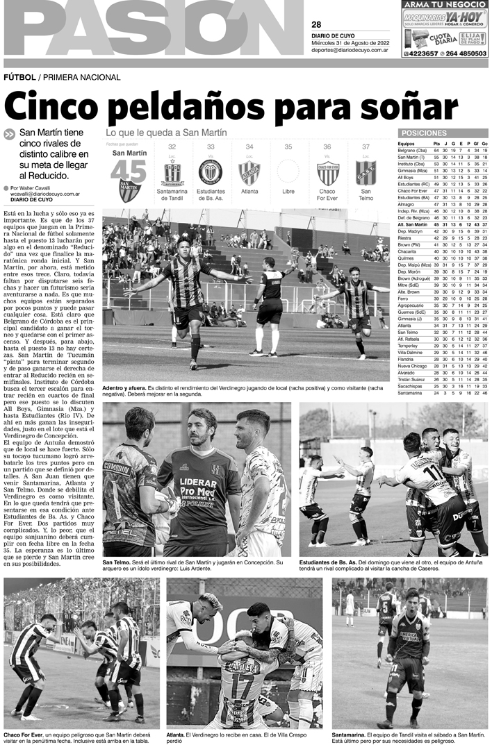 Diario de Cuyo | HOME | Noticias Tapa Pasión 31 de Agosto del 2022 Por Redacción Diario de Cuyo 30/08/2022 · 0:00 Escuchar la noticia Escuchar la noticia Your browser doesn’t support HTML5 audio Ver los comentarios ›