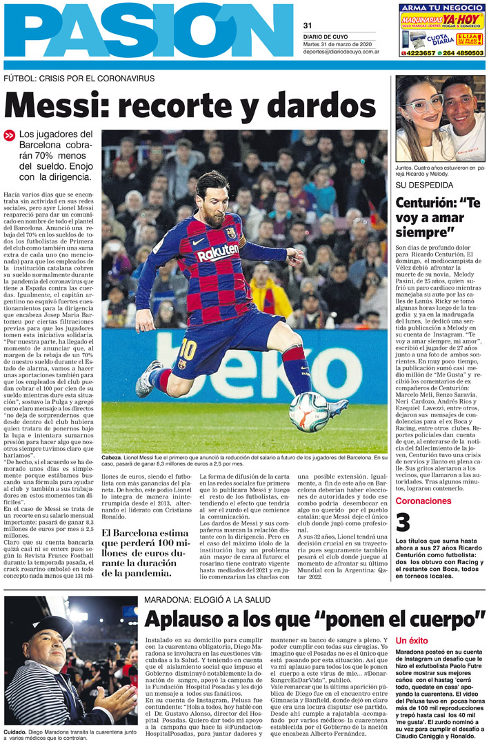 Diario de Cuyo | HOME | Noticias Tapa Pasión 31 de Marzo del 2020 Por Redacción Diario de Cuyo 30/03/2020 · 0:00 Escuchar la noticia Escuchar la noticia Your browser doesn’t support HTML5 audio Ver los comentarios ›