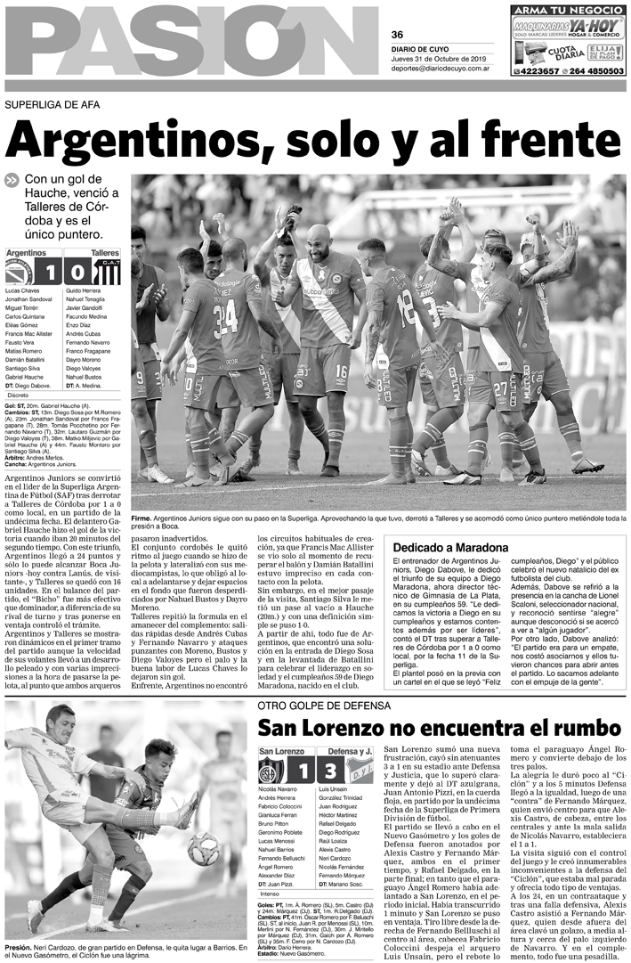 Diario de Cuyo | HOME | Noticias | Tapa Pasión Tapa Pasión 31 de Octubre 2019 Por Redacción Diario de Cuyo 30/10/2019 · 0:00 Escuchar la noticia Escuchar la noticia Your browser doesn’t support HTML5 audio Tapa Pasión Ver los comentarios ›