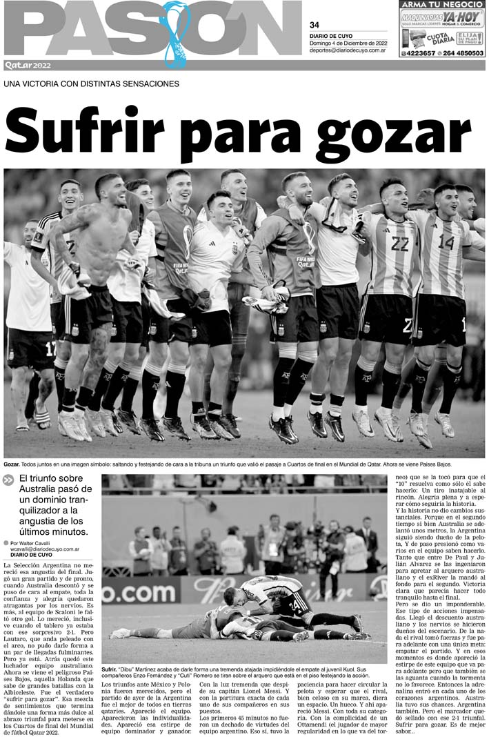 Diario de Cuyo | HOME | Noticias Tapa Pasión 4 de Diciembre de 2022 Por Redacción Diario de Cuyo 03/12/2022 · 0:00 Escuchar la noticia Escuchar la noticia Your browser doesn’t support HTML5 audio Ver los comentarios ›