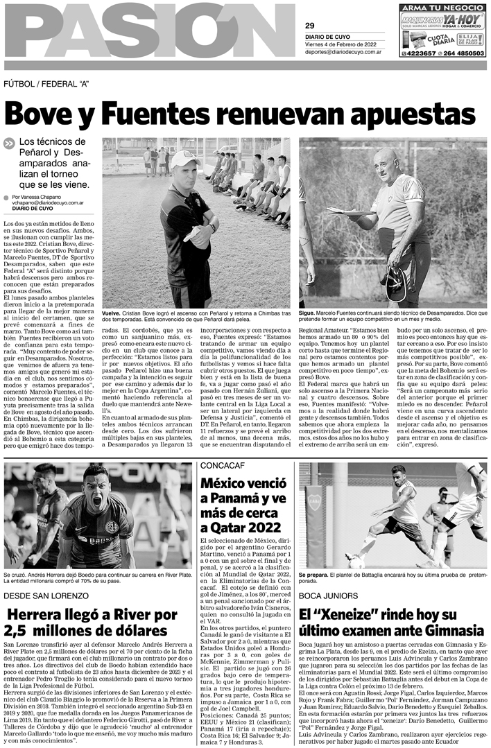 Diario de Cuyo | HOME | Noticias Tapa Pasión 4 de Febrero de 2022 Por Redacción Diario de Cuyo 03/02/2022 · 0:00 Escuchar la noticia Escuchar la noticia Your browser doesn’t support HTML5 audio Ver los comentarios ›