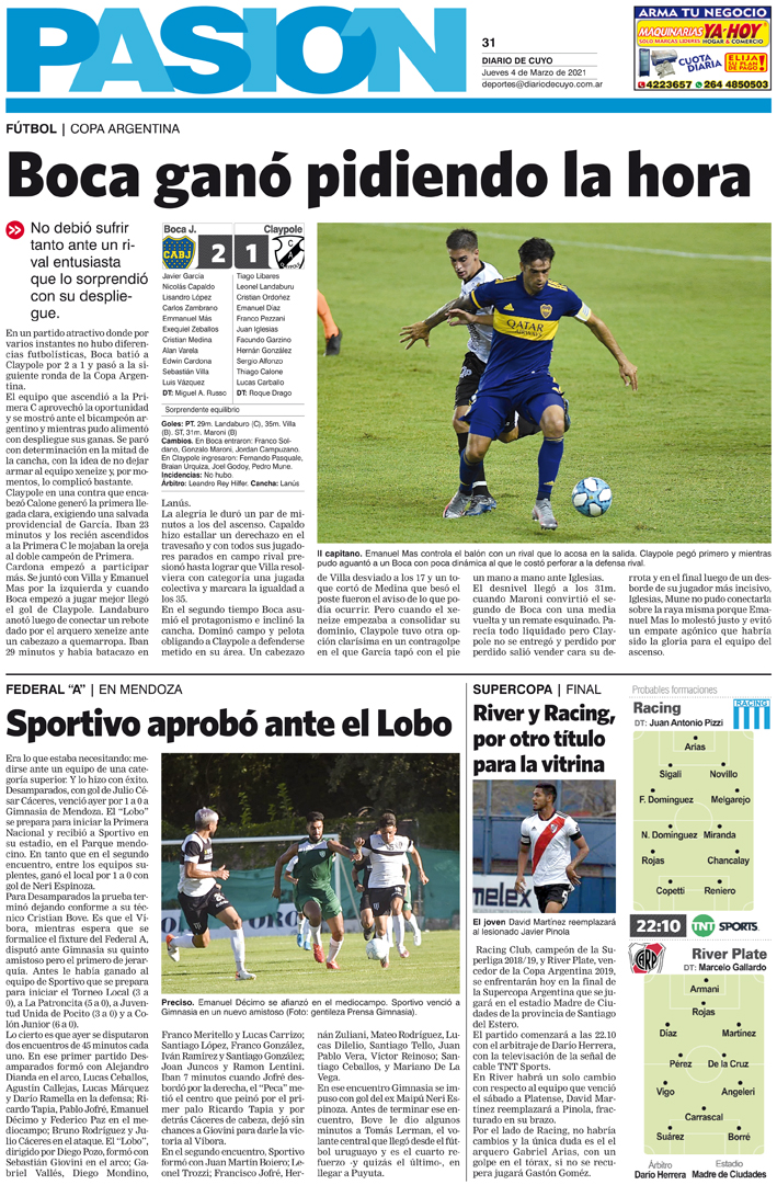 Diario de Cuyo | HOME | Noticias | Tapa Pasión Tapa Pasión 4 de Marzo de 2021 Por Redacción Diario de Cuyo 03/03/2021 · 0:00 Escuchar la noticia Escuchar la noticia Your browser doesn’t support HTML5 audio Tapa Pasión Ver los comentarios ›