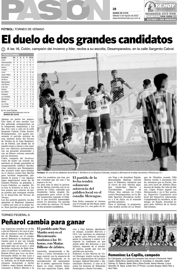 Diario de Cuyo | HOME | Noticias Tapa Pasión 5 de Agosto de 2023 Por Redacción Diario de Cuyo 04/08/2023 · 0:00 Escuchar la noticia Escuchar la noticia Your browser doesn’t support HTML5 audio Ver los comentarios ›