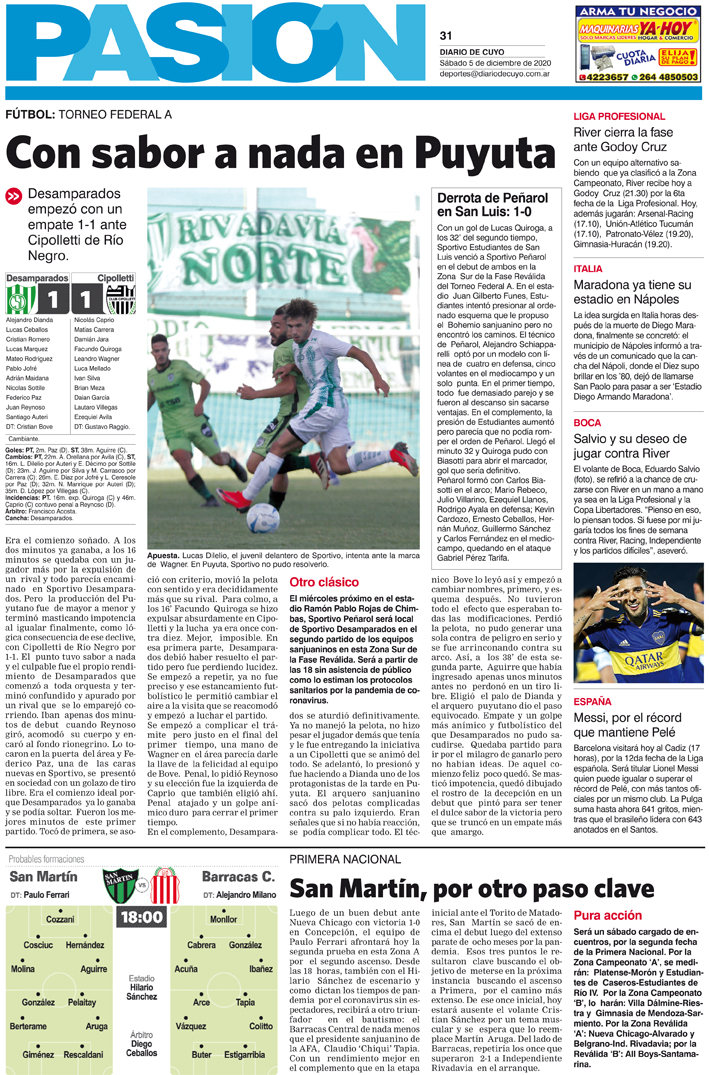 Diario de Cuyo | HOME | Noticias | Tapa Pasión Tapa Pasión 5 de Diciembre de 2020 Por Redacción Diario de Cuyo 04/12/2020 · 0:00 Escuchar la noticia Escuchar la noticia Your browser doesn’t support HTML5 audio Tapa Pasión Ver los comentarios ›
