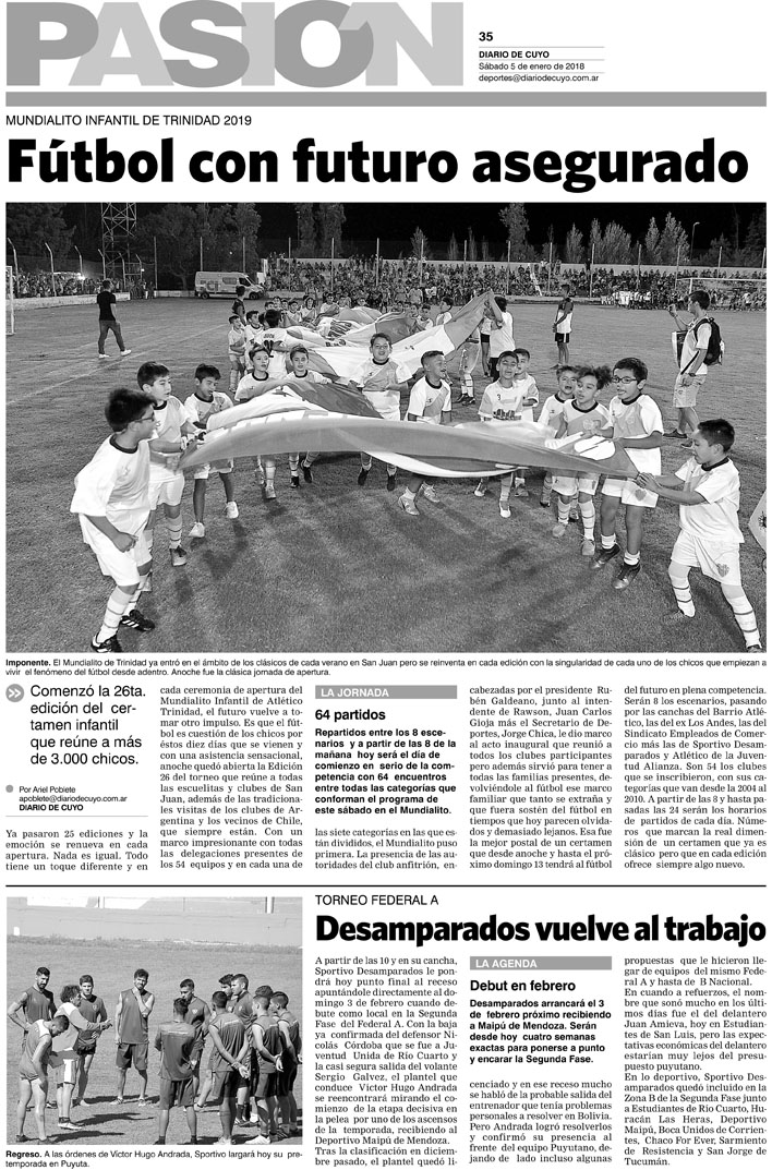 Diario de Cuyo | HOME | Noticias | Tapa Pasión Tapa Pasión 5 de Enero 2019 Por Redacción Diario de Cuyo 05/01/2019 · 0:00 Escuchar la noticia Escuchar la noticia Your browser doesn’t support HTML5 audio Tapa Pasión Ver los comentarios ›
