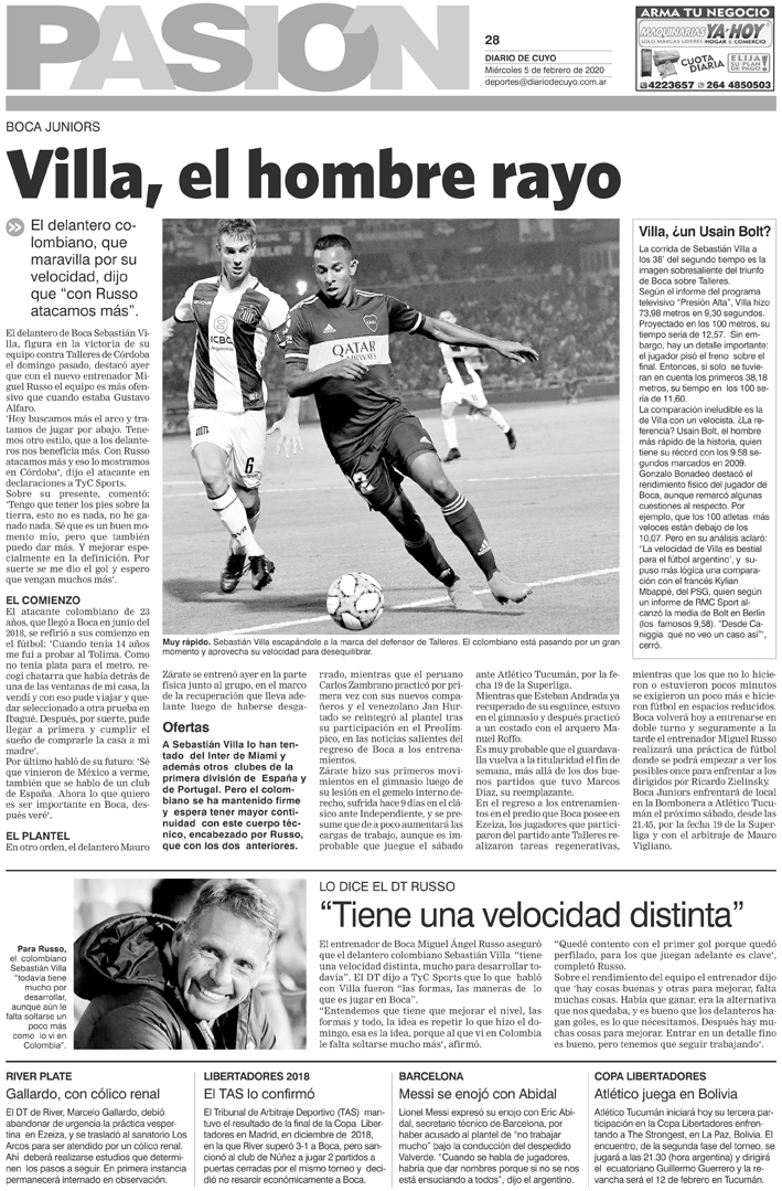 Diario de Cuyo | HOME | Noticias Tapa Pasión 5 de Febrero del 2020 Por Redacción Diario de Cuyo 04/02/2020 · 0:00 Escuchar la noticia Escuchar la noticia Your browser doesn’t support HTML5 audio Ver los comentarios ›
