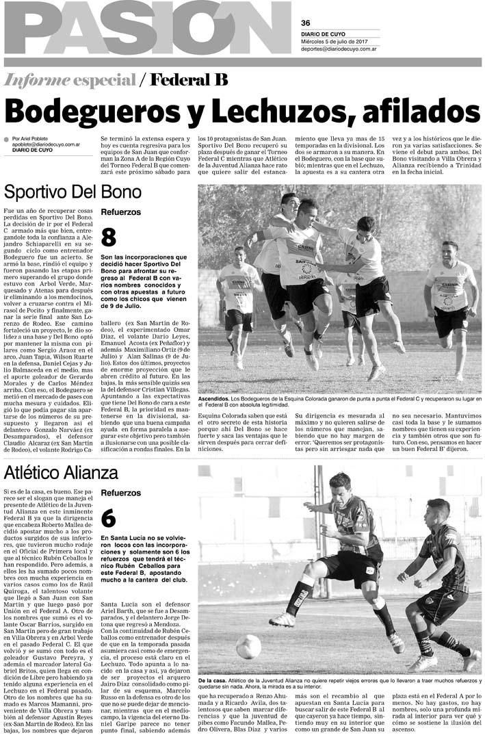 Diario de Cuyo | HOME | Noticias Tapa Pasión 5 de Julio del 2017 Por Redacción Diario de Cuyo 04/07/2017 · 0:00 Escuchar la noticia Escuchar la noticia Your browser doesn’t support HTML5 audio Ver los comentarios ›