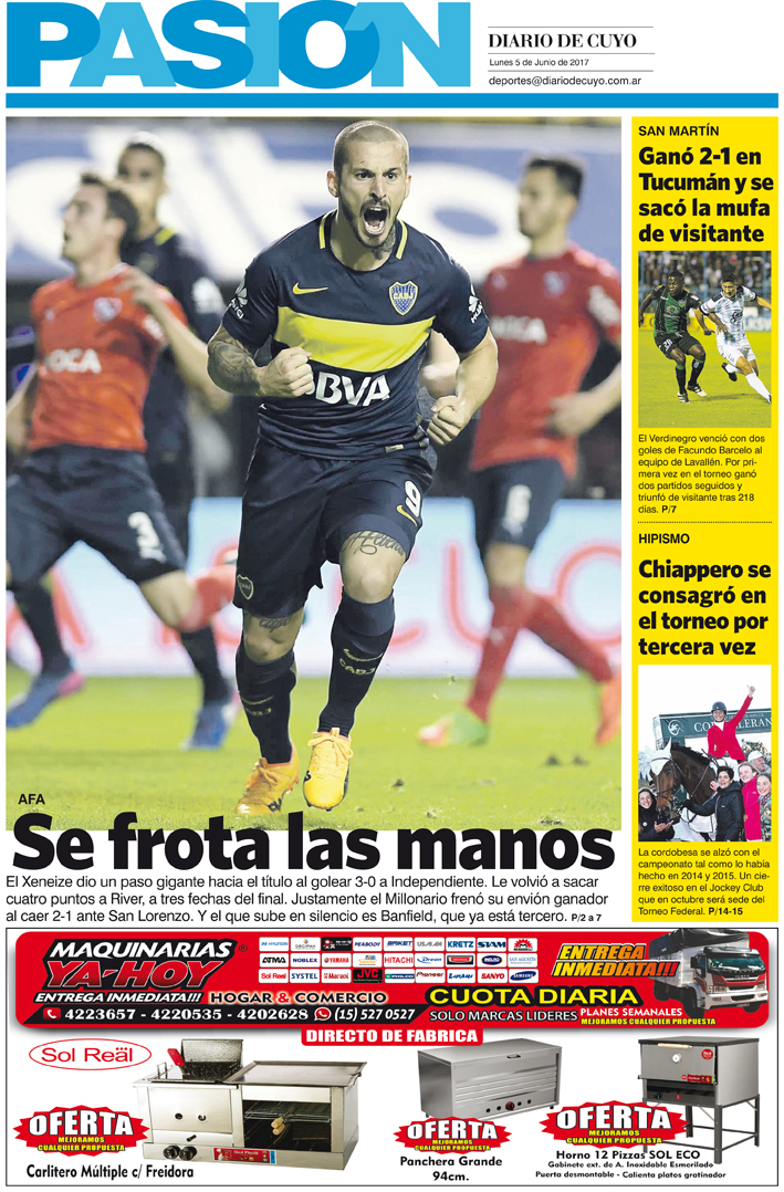 Diario de Cuyo | HOME | Noticias Tapa Pasión 5 de Junio del 2017 Por Redacción Diario de Cuyo 05/06/2017 · 0:00 Escuchar la noticia Escuchar la noticia Your browser doesn’t support HTML5 audio Ver los comentarios ›