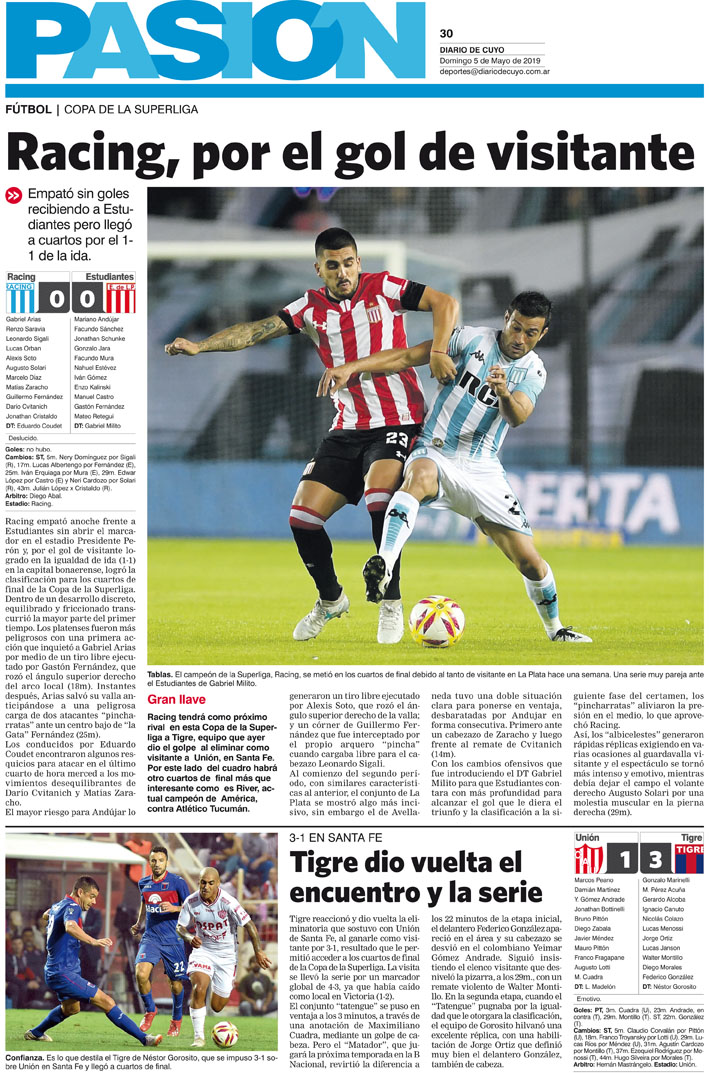 Diario de Cuyo | HOME | Noticias | Tapa Pasión Tapa Pasión 5 de Mayo 2019 Por Redacción Diario de Cuyo 04/05/2019 · 0:00 Escuchar la noticia Escuchar la noticia Your browser doesn’t support HTML5 audio Tapa Pasión Ver los comentarios ›