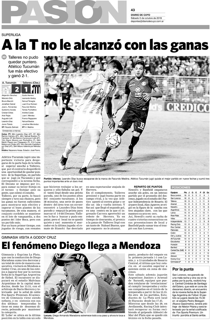 Diario de Cuyo | HOME | Noticias | Tapa Pasión Tapa Pasión 5 de Octubre 2019 Por Redacción Diario de Cuyo 05/10/2019 · 0:00 Escuchar la noticia Escuchar la noticia Your browser doesn’t support HTML5 audio Tapa Pasión Ver los comentarios ›