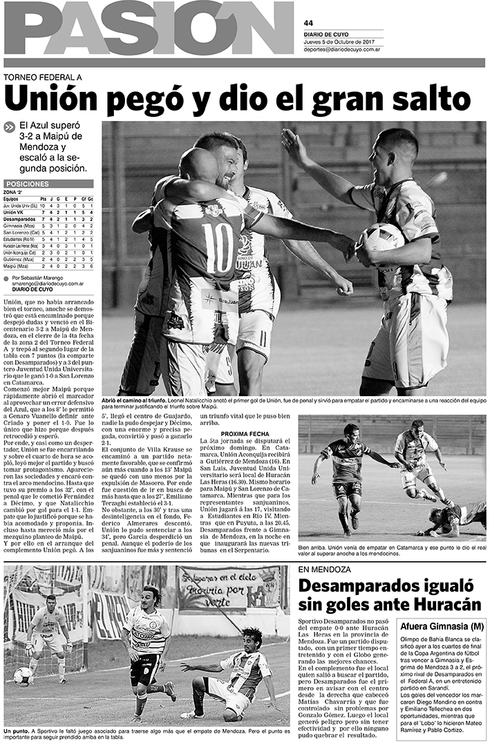 Diario de Cuyo | HOME | Noticias Tapa Pasión 5 de Octubre del 2017 Por Redacción Diario de Cuyo 04/10/2017 · 0:00 Escuchar la noticia Escuchar la noticia Your browser doesn’t support HTML5 audio Ver los comentarios ›