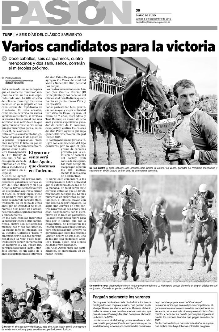 Diario de Cuyo | HOME | Noticias | Tapa Pasión Tapa Pasión 5 de Septiembre 2019 Por Redacción Diario de Cuyo 04/09/2019 · 0:00 Escuchar la noticia Escuchar la noticia Your browser doesn’t support HTML5 audio Tapa Pasión Ver los comentarios ›