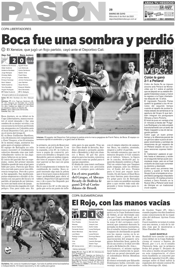 Diario de Cuyo | HOME | Noticias Tapa Pasión 6 Abril de 2022 Por Redacción Diario de Cuyo 06/04/2022 · 0:00 Escuchar la noticia Escuchar la noticia Your browser doesn’t support HTML5 audio Ver los comentarios ›