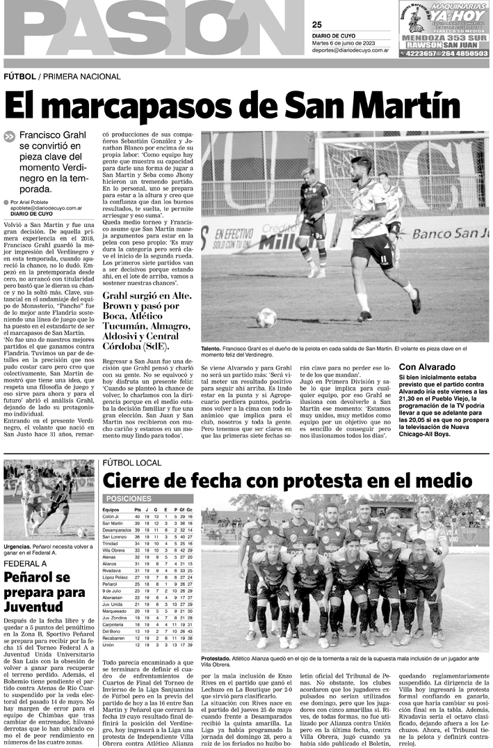 Diario de Cuyo | HOME | Noticias Tapa Pasión 6 de Junio de 2023 Por Redacción Diario de Cuyo 05/06/2023 · 0:00 Escuchar la noticia Escuchar la noticia Your browser doesn’t support HTML5 audio Ver los comentarios ›
