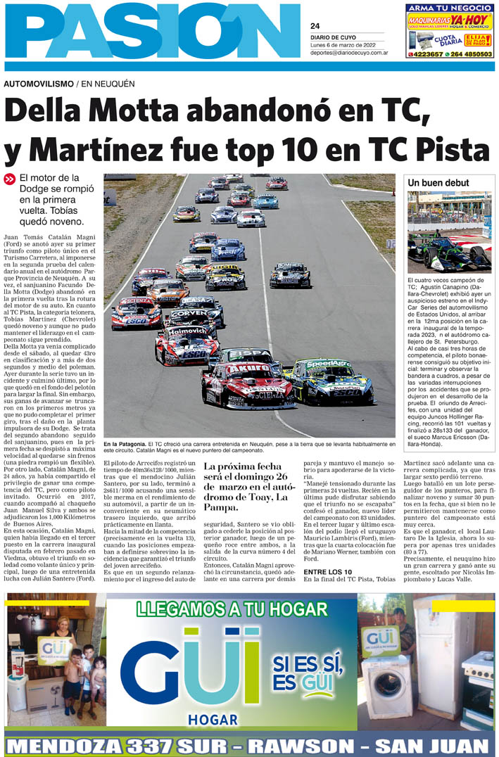 Diario de Cuyo | HOME | Noticias Tapa Pasión 6 de Marzo de 2023 Por Redacción Diario de Cuyo 05/03/2023 · 0:00 Escuchar la noticia Escuchar la noticia Your browser doesn’t support HTML5 audio Ver los comentarios ›