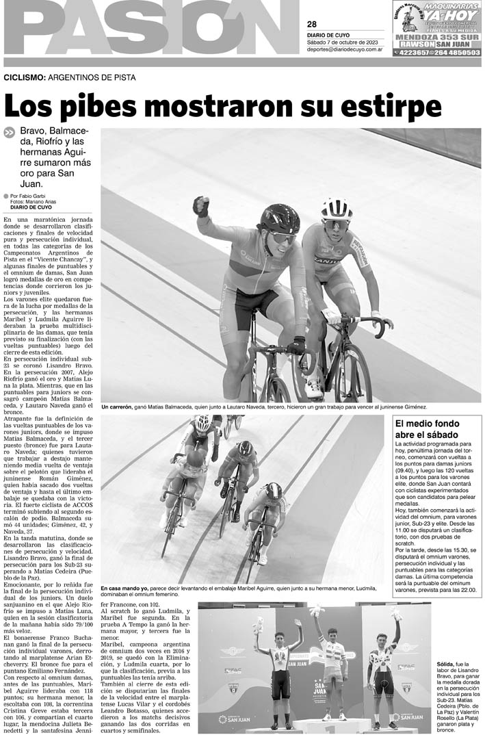 Diario de Cuyo | HOME | Noticias Tapa Pasión 7 de Octubre de 2023 Por Redacción Diario de Cuyo 06/10/2023 · 0:00 Escuchar la noticia Escuchar la noticia Your browser doesn’t support HTML5 audio Ver los comentarios ›