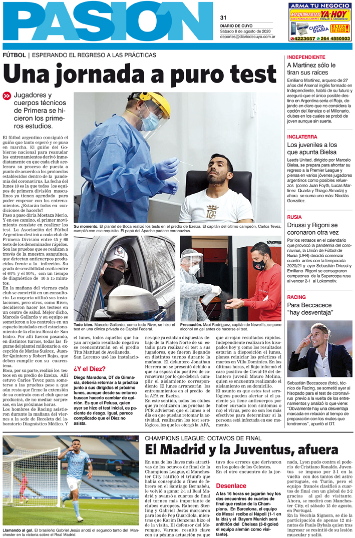 Diario de Cuyo | HOME | Noticias | Tapa Pasión Tapa Pasión 8 de Agosto de 2020 Por Redacción Diario de Cuyo 07/08/2020 · 0:00 Escuchar la noticia Escuchar la noticia Your browser doesn’t support HTML5 audio Tapa Pasión Ver los comentarios ›