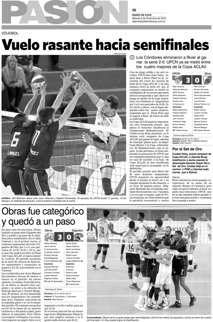 Diario de Cuyo | HOME | Noticias Tapa Pasión 8 de Diciembre 2018 Por Redacción Diario de Cuyo 08/12/2018 · 0:00 Escuchar la noticia Escuchar la noticia Your browser doesn’t support HTML5 audio Ver los comentarios ›