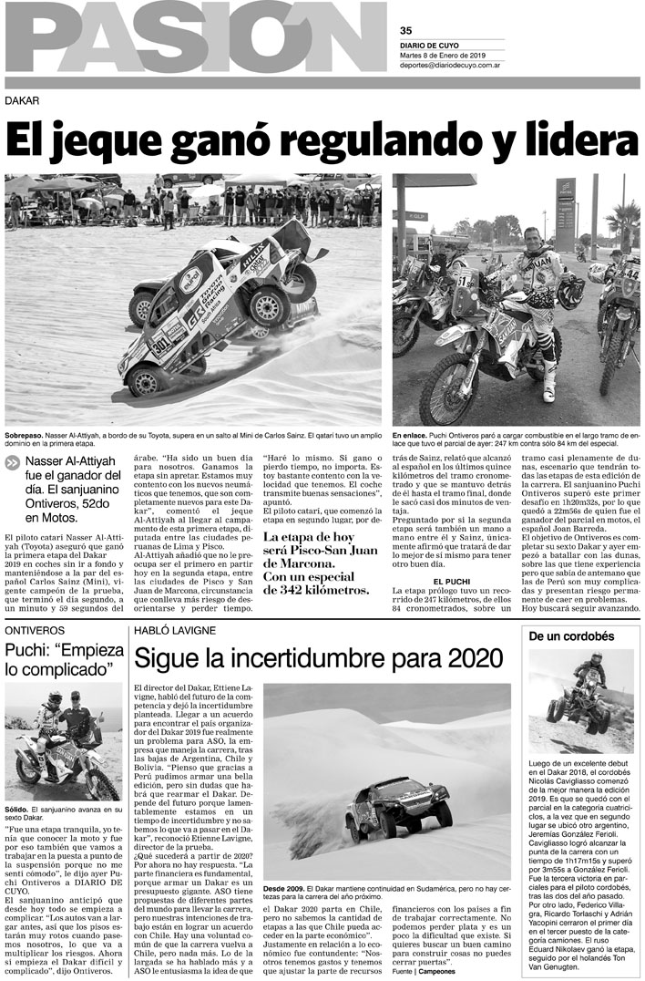 Diario de Cuyo | HOME | Noticias | Tapa Pasión Tapa Pasión 8 de Enero 2019 Por Redacción Diario de Cuyo 07/01/2019 · 0:00 Escuchar la noticia Escuchar la noticia Your browser doesn’t support HTML5 audio Tapa Pasión Ver los comentarios ›