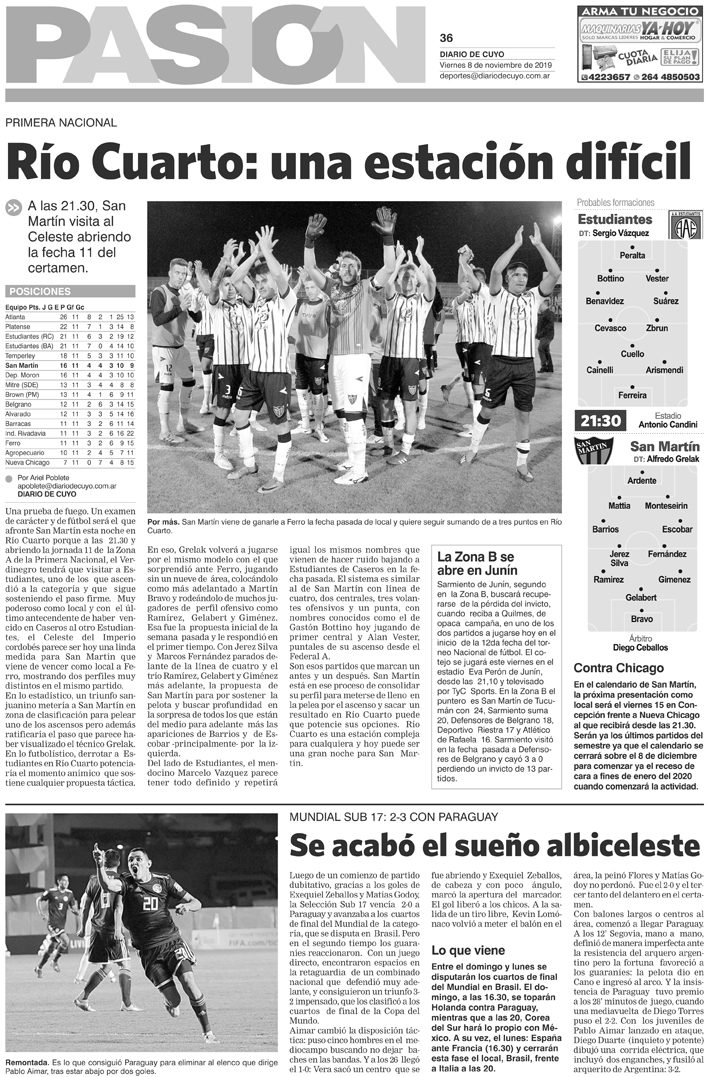 Diario de Cuyo | HOME | Noticias | Tapa Pasión Tapa Pasión 8 de Noviembre 2019 Por Redacción Diario de Cuyo 07/11/2019 · 0:00 Escuchar la noticia Escuchar la noticia Your browser doesn’t support HTML5 audio Tapa Pasión Ver los comentarios ›