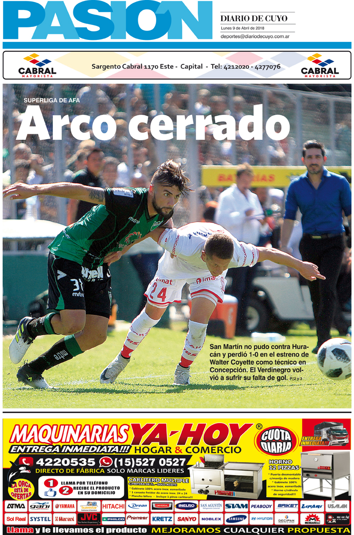 Diario de Cuyo | HOME | Noticias | Tapa Pasión Tapa Pasión 9 de Abril del 2018 Por Redacción Diario de Cuyo 09/04/2018 · 0:00 Escuchar la noticia Escuchar la noticia Your browser doesn’t support HTML5 audio Tapa Pasión Ver los comentarios ›