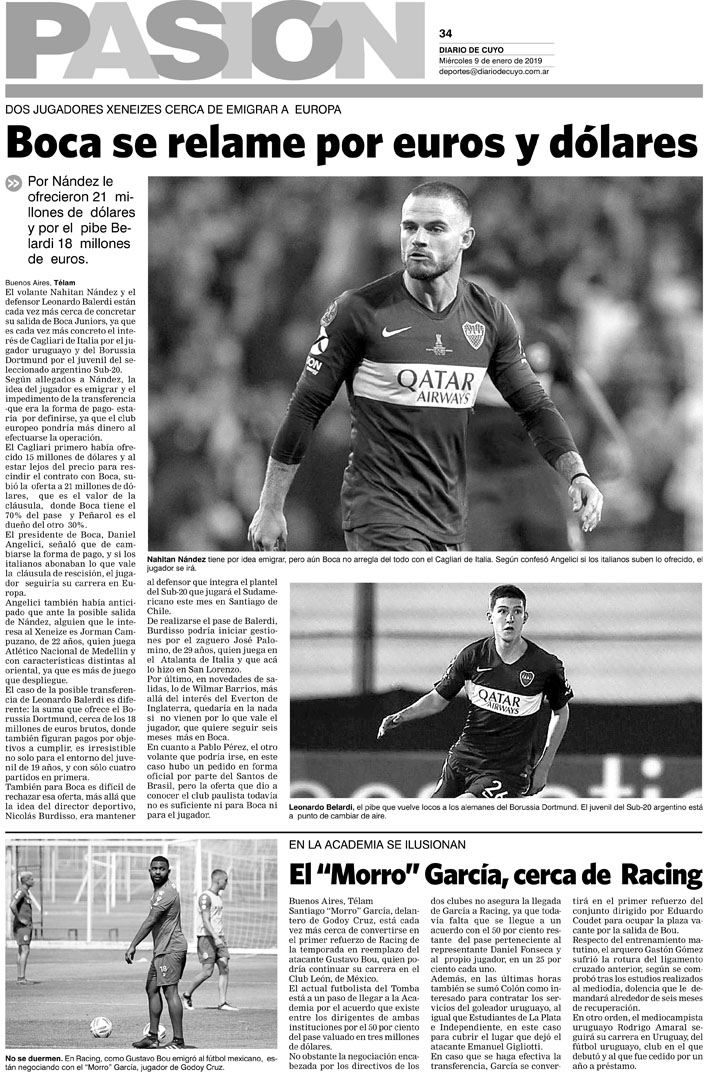 Diario de Cuyo | HOME | Noticias | Tapa Pasión Tapa Pasión 9 de Enero 2019 Por Redacción Diario de Cuyo 08/01/2019 · 0:00 Escuchar la noticia Escuchar la noticia Your browser doesn’t support HTML5 audio Tapa Pasión Ver los comentarios ›