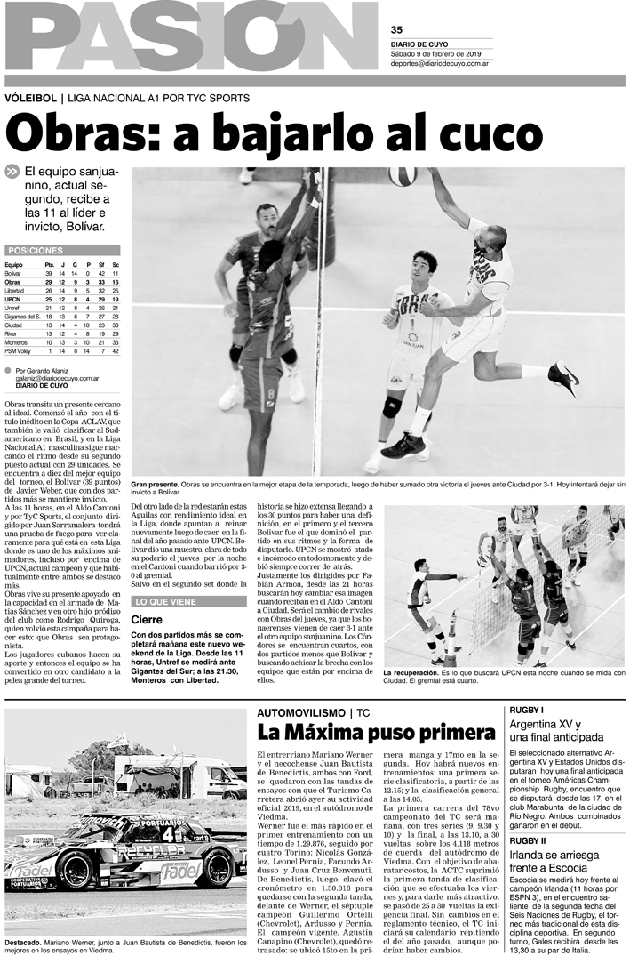 Diario de Cuyo | HOME | Noticias | Tapa Pasión Tapa Pasión 9 de Febrero 2019 Por Redacción Diario de Cuyo 08/02/2019 · 0:00 Escuchar la noticia Escuchar la noticia Your browser doesn’t support HTML5 audio Tapa Pasión Ver los comentarios ›