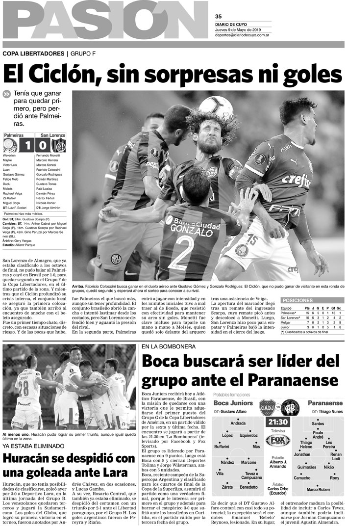 Diario de Cuyo | HOME | Noticias | Tapa Pasión Tapa Pasión 9 de Mayo 2019 Por Redacción Diario de Cuyo 08/05/2019 · 0:00 Escuchar la noticia Escuchar la noticia Your browser doesn’t support HTML5 audio Tapa Pasión Ver los comentarios ›