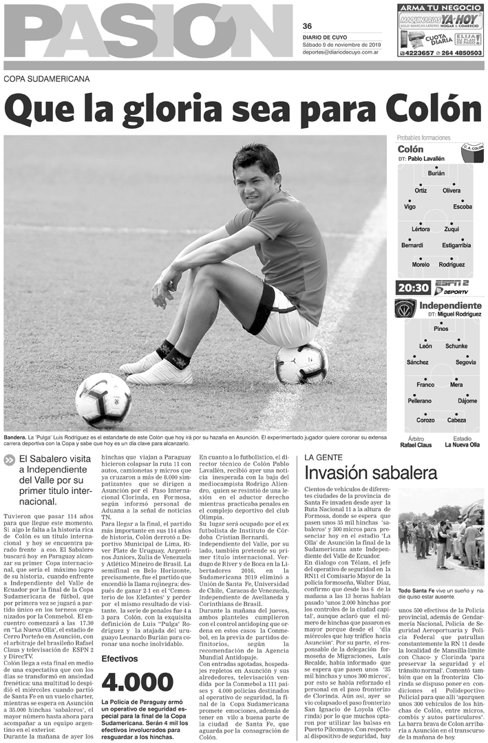 Diario de Cuyo | HOME | Noticias | Tapa Pasión Tapa Pasión 9 de Noviembre 2019 Por Redacción Diario de Cuyo 08/11/2019 · 0:00 Escuchar la noticia Escuchar la noticia Your browser doesn’t support HTML5 audio Tapa Pasión Ver los comentarios ›