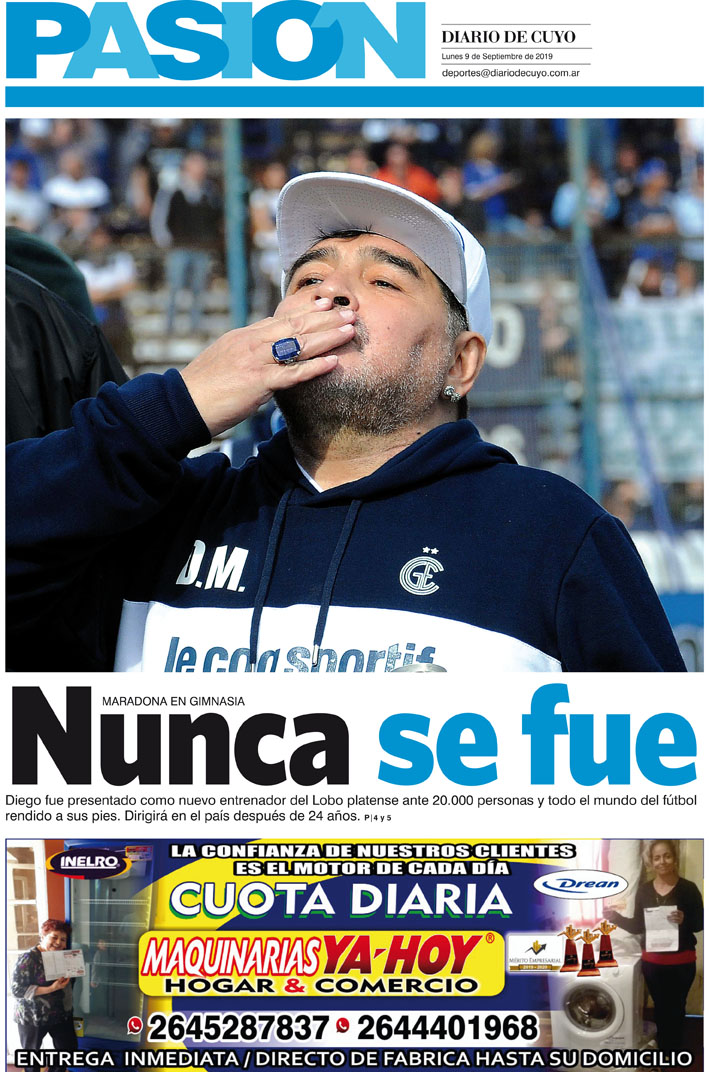 Diario de Cuyo | HOME | Noticias | Tapa Pasión Tapa Pasión 9 de Septiembre de 2019 Por Redacción Diario de Cuyo 08/09/2019 · 0:00 Escuchar la noticia Escuchar la noticia Your browser doesn’t support HTML5 audio Tapa Pasión Ver los comentarios ›