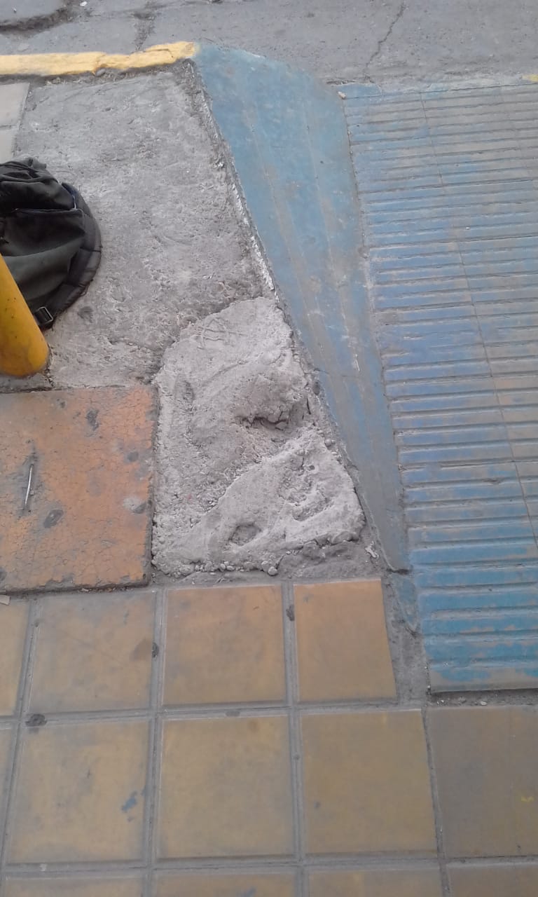 Un lector envió el estado de la vereda en la esquina de Mendoza y Rivadavia, en Capital, donde se cayó un abuelo de 70 años. Hasta dejaron un cartel informando sobre el hecho por el hueco que había al lad de una rampa.
