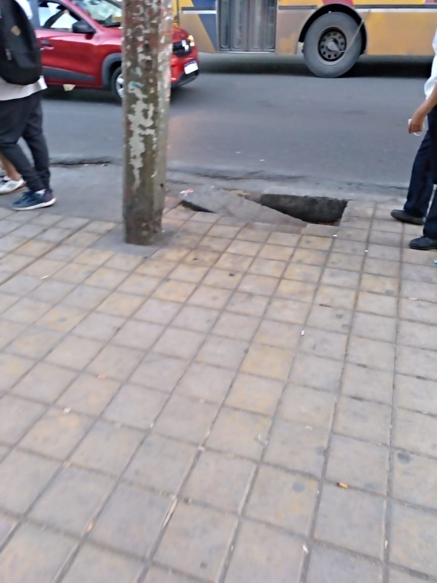 Un lector envió una imagen y el siguiente comentario: "Así de destruidas están als tapas de calle Santa Fe casi Avenida Rawson. Es un peligro porque por el lugar transitan muchas personas".
